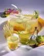Mix fruit juices and grenadine in a cocktail shaker. Put the ice cubes in a freezer bag and break them up roughly. Pour into a glass, pour the cocktail. Fill up with tonic water. Put the kiwi slice on a cocktail skewer and pour into the glass