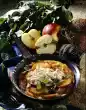 Arrange pancake strips and ragout.