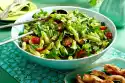 Cook the rest of the broccoli and sugar snap peas in the pasta water for about 4 minutes. Drain, mix with pesto, arrange and sprinkle with pistachios.