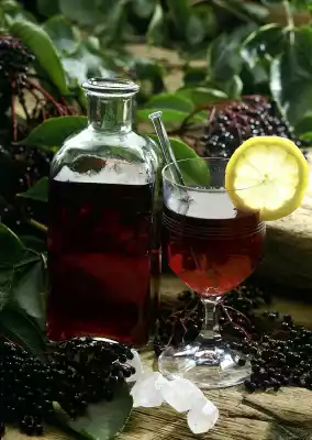 Clean the lilac berries, pluck them from the panicles and wash them thoroughly. Pour about 1 litre of water into the lower part of the steam juicer. Layer the lilac berries and sugar in the perforated insert and leave to steep for about 2 hours.