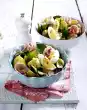Cut the cress from the beds. Fold about 2/3 into the salad and arrange on plates with fish and stuffed potatoes. Garnish with the rest of the cress.