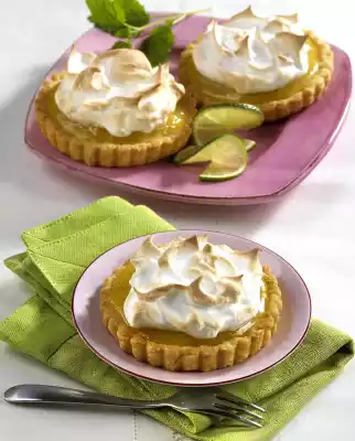Beat the egg whites and 1 teaspoon lime juice until stiff, pour in 100 g sugar. Spread over the cream. In the oven (electric cooker: 200 °C/circulating air: 175 °C/gas: level 3)