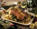 Mix lime juice, grape juice, salt and pepper. Wash the meat, dab dry. Place the meat in a flat bowl and pour the marinade over it. Leave to soak overnight. Peel and slice the garlic.