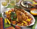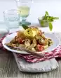 In the meantime, wash the lime thoroughly and cut into slices. Remove the meat from the marinade and dab dry with kitchen paper. Heat oil in a pan and fry meat for 2-3 minutes on each side. Add the slices of lime shortly before the end of the frying time. Season cutlets with salt and pepper. Serve the schnitzel on braised tomatoes, garnished with lime julienne and basil
