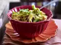 Season nut sauce with salt, pepper and lemon juice. Drain the pasta and broccoli, let them drain and put them back into the pot. Add the nut sauce and mix in.