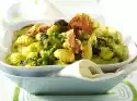 Roast pine nuts briefly in a pan without fat. Remove the crusts from the toast and dice it roughly. Peel and chop onion. Wash wild garlic and parsley, chop coarsely. Puree herbs, onion, toast, 1 tablespoon roasted pine nuts, parmesan and olive oil in a mixer.