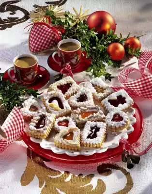 Whisk the egg yolks. Coat the cookies with the hole, sprinkle with pine nuts etc. Bake all cookies on trays in a hot oven (electric cooker: 175 °C/circulating air: 150 °C/gas: level 2) for about 12 minutes. Let them cool down