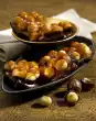 For the vinaigrette, whisk vinegar, salt, pepper and honey. Add oil drop by drop to the vinaigrette. Peel the shallot and cut into fine cubes. Peel the tomato thinly with a sharp peeler. Cut the fruit in half, remove the seeds and cut the flesh into fine cubes. Stir the diced shallot and tomato into the vinaigrette. Chop the pistachios.