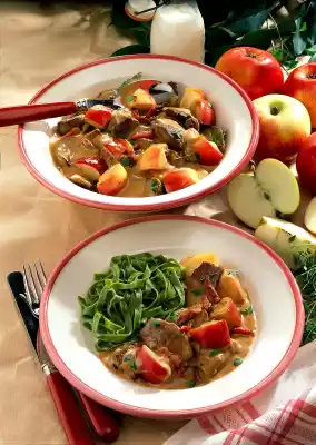 Arrange the ragout. Garnish with thyme if desired. Green ribbon noodles taste good with it.