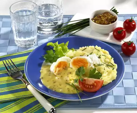 Peel and finely chop the onion. Fry in hot oil. Dust with flour and sauté until light yellow. Stir in 100 ml water and 4 tbsp. milk and simmer for about 5 minutes. Season to taste with mustard, salt and pepper