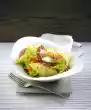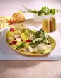 For the vinaigrette, whisk vinegar, salt, pepper, mustard and ##honey##. Add 2 tablespoons of oil drop by drop. Peel and finely dice the shallot and stir into the vinaigrette. ##Wash the marjoram and shake dry.