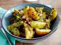 Coarsely chop 70 g cashew nuts and roast them in a pan without fat until golden brown. Wash and halve the apple, remove the core and cut into fine slices. Drizzle apple slices with lemon juice. Mix broccoli florets, half of the dressing, chickpeas and apple slices. Arrange salad. Sprinkle with roasted cashew nuts. Serve with the rest of the dressing.