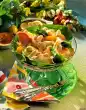 Drain the potatoes, rinse and peel. Cut the potatoes into slices about 3 mm thick and pour the hot vinaigrette over them. Mix the potato salad carefully and season with salt and pepper. Heat the remaining oil in a pan and fry the escalopes in it on both sides for about 5 minutes until golden brown. Meanwhile wash the chives, dab dry and cut into fine rolls. Remove the escalopes from the pan and degrease them on kitchen paper. Arrange potato and mushroom salad with cutlets on a plate. Sprinkle with chives and garnish with lemon slices