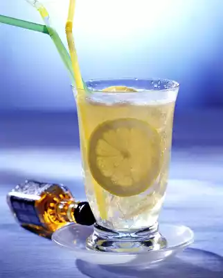 Fill half of the glass with ice cubes. Put a slice of lemon into the glass. Pour whiskey, Triple Sec, lime and lemon juice into the glass and fill up with lemonade. Serve immediately.