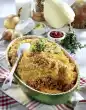 Remove the casserole from the oven and sprinkle with chives. Serve garnished with chives and cherry tomato.