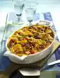 Take it out and put it aside. Grease an ovenproof dish and line it with half the macaroni. Add half of the savoy cabbage and spread half of the minced meat on top. Layer the remaining macaroni, savoy cabbage and minced meat. Grate the gouda coarsely, sprinkle over it. Bake in the preheated oven (electric: 200 °C/ gas: level 3) for about 45 minutes. Serve in the tin garnished with tomato and parsley