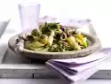 Peel and finely dice the onion and garlic. Heat the oil in a pan and fry the onion and garlic for about 8 minutes at low heat. Leave to cool. Cook macaroni in plenty of boiling salted water for about 8 minutes. In the meantime wash and clean the zucchini and tomatoes.