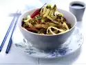 Stir in the sauce thickener and bring to the boil again. Add the spinach. Season to taste with salt, pepper and lemon juice. Add the smoked pork loin. Pour macaroni into a sieve, quench and drain briefly.