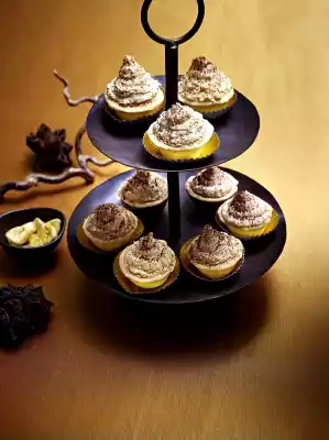 Pour coconut mixture into the muffin troughs and bake in the preheated oven, 1st shelf from below (electric oven: 150 °C/ convection oven: 125 °C/ gas: see manufacturer) for approx. 30 minutes. Remove and let cool off. Dust with cocoa powder