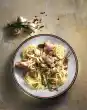 Cook the macaroni in boiling salted water for about 8 minutes and drain. Peel, wash and slice the carrots. Clean the savoy cabbage, cut out the stalk. Cut the savoy cabbage first into slices, then into strips.