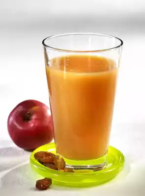 Peel the mango, cut the flesh off the stone. Add lemon juice, raisins and honey and puree. Season with cinnamon. Serve filled up with apple juice