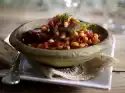 Pour the rice into a good 400 ml of boiling salted water, cover and allow to swell over a low heat for about 20 minutes, then allow to cool slightly. Chop the nuts. Roast in a pan without fat, remove.