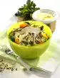 Salads clean, wash, spin dry and pluck smaller. Cut remaining mango into thin slices. Mix with the salad and the mango sauce.