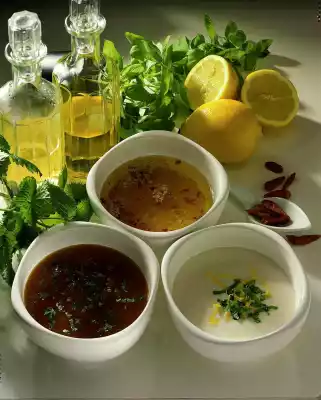 Chop the ginger finely and mix with the mango sauce. Wash and cut lemon balm into fine strips and stir into the sauce. Season to taste with cayenne pepper.