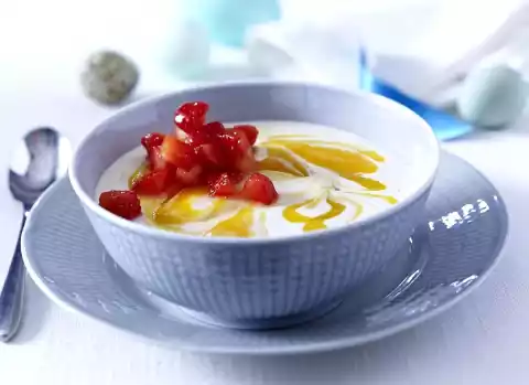 In the meantime wash, clean and dice the strawberries. Mix strawberries, remaining vanilla pulp and 1 tablespoon lemon juice. Leave to stand for about 20 minutes.