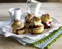 Heat 2 tablespoons of jam and pass through a sieve. Whisk the egg whites and salt with the whisk of the hand mixer until stiff, adding sugar. Continue beating the beaten egg whites until the sugar has dissolved. Lightly marble the beaten egg whites with jam and place 10 flattened heaps of beaten egg whites on a baking tray lined with baking paper.