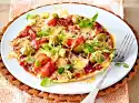Form a small ball of pizza dough into a round (approx. 22 cm Ø) pizza. Spread with approx. 1/4 tomato sauce and cover with 1/4 each of mozzarella and basil.