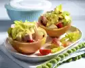 Add dripping wet spinach and steam for 3 minutes. Heat 1 teaspoon of oil in a coated pan, fry the prawns on both sides for 2 minutes each, season with salt and cayenne pepper. Add chopped oregano and spring onion rings to the tomato sauce, bring to the boil and season with salt, pepper, paprika and sugar.