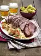 Cook for 8 minutes. Drain. Wash and chop the parsley. Arrange goulash and noodles. Sprinkle with parsley
