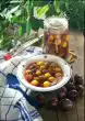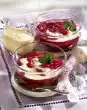 Cut the grapefruit slices to the middle and turn them into spirals. Arrange 2 red and 2 light spirals alternately on plates. Spread the sauce on the plates and serve sprinkled with chopped pistachios.