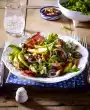 Mix 5 tablespoons apricot and lemon juice. Peel bananas and cut them directly into slices in the juice. Fold in prepared fruit, except for apricot halves