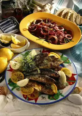 Fry for another five minutes, turning. Season with salt and pepper. Add vinegar and lemon juice, bring to the boil briefly. Wash tarragon, pluck leaves from the stalks and add to the stock. Cool everything in it and let it soak for two to three hours. Delicious with fresh baguette