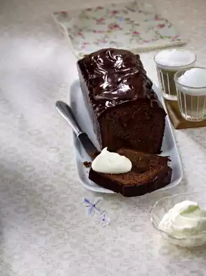 Put the melted fat-chocolate mixture into a mixing bowl. Stir in egg-sugar cream. Mix flour and baking powder, sieve over it and stir in briefly. Fold in chocolate bar. Pour the dough into a well greased, flour-sprinkled box cake tin (25 cm long; 1 1/2 litre capacity) and smooth it down. Bake in a preheated oven (electric cooker: 175 °C/ convection oven: 150 °C/ gas: level 2) for approx. 1 hour. After 45 minutes cover with aluminium foil if necessary