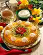 Cut the marzipan into strips (as wide as the cake edge is high) and press them onto the cake edge. Cut out flowers of approx. 7.5 cm Ø from the remaining marzipan. Cut the flowers in half and decorate the edge of the cake with them.