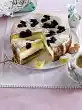 Place the second shelf on top. Whip the rest of the cream and vanilla sugar until stiff. Spread the cake with the cream thinly at the edges and thicker in the middle. Chill for about 30 minutes. Knead marzipan with sieved icing sugar and roll out.