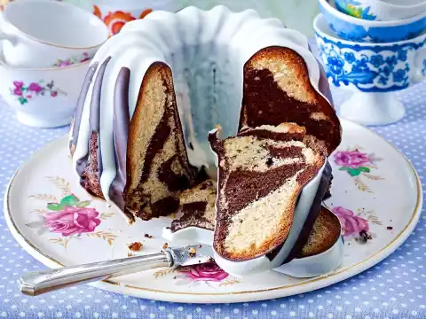 Bake in a hot oven for 40-45 minutes. After approx. 40 minutes, check with a long wooden skewer whether the dough is baked through. If there is still tough dough sticking to the skewer, bake the cake for another 5 minutes (not longer, otherwise the cake will get dry).