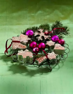 Knead marzipan, 125 g icing sugar and rose water. Colour pink with a few drops of food colouring. Roll out the marzipan mixture onto some icing sugar to a thickness of about 1.5 cm. Cut out different Christmas motives (e.g. moose, hearts, stars etc.; 4-6 cm Ø). Leave marzipan in the cutters and decorate with pearls. Dust with icing sugar before giving away