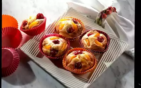 Carve the apricots crosswise, blanch briefly in boiling water, rinse and peel the skin. Halve the apricots, remove the stone and cut the apricots into slices. Clean, wash and stone the cherries. Cream fat and sugar. Cut marzipan into pieces, add and stir well. Add the eggs one after the other and stir the mixture until creamy.
