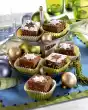 Pour the mixture into a piping bag with a perforated spout and squirt onto the triangles in a snake shape. Bake in the preheated oven (electric oven: 200 °C/ gas: level 3) for 12-15 minutes. Heat up the jam and spread it on the triangles. Sprinkle with pistachios. Results in approx. 25 pieces
