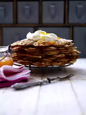Preheat and grease the waffle iron. Put approx. 2 tbsp. of dough in the middle of the waffle iron and bake until golden yellow. Place on a cake rack. Bake another 11 waffles from the remaining dough. Serve dusted with icing sugar. Serve with whipped cream and orange jam