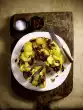 Peel, wash and cut the potatoes into pieces and cook them in boiling salted water for about 20 minutes. Peel and finely dice the onion. Clean, wash and cut the salad into strips. Wash thyme, dab dry and remove leaves from the stems. Wash fish, dab dry and cut into pieces. Season with salt and pepper and turn in flour