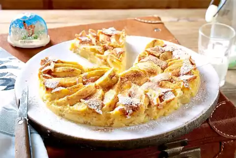 Bake the apple pancake in a hot oven for about 70 minutes. Mix 1 tbsp. brown sugar and 1 tsp. cinnamon. Sprinkle the pancakes with cinnamon sugar halfway through the baking time. If necessary, cover the pancake with aluminium foil about 20 minutes before the end of the baking time.