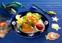 Wash the herring fillet, dab dry and cut into narrow strips. Wash the apple, quarter it, core it and cut it into fine strips. Clean, wash and drain the salad. Cut lettuce and cucumber into fine strips.