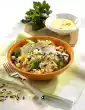 Clean, wash and drain the radish and spring onion. Cut the spring onion into fine rings. Clean field and frisée lettuce, wash thoroughly several times and also drain. Pluck into bite-sized pieces. Wash the herbs, dab dry and pick the leaves from the stems. Wash the flowers and let them drain as well.