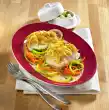 Wash apples, dab dry, core with an apple core cutter. Cut or slice apples into thin rings and sprinkle with lemon juice. Cut the rolls in half. Spread the lower halves of the rolls with curry cream.