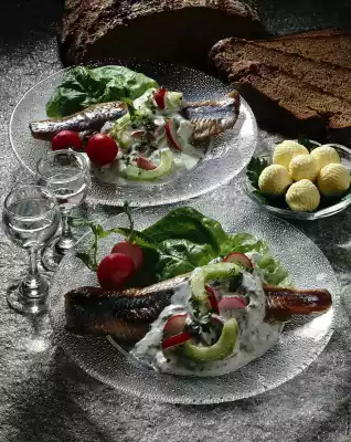 Dab matie fillets dry with kitchen paper. Arrange the fillets and tartar sauce on the salad leaves. Place radishes and cucumber pieces next to them and sprinkle with salt and pepper. Serve with brown bread and butter. As main course double the amount of ingredients. Serve with new potatoes